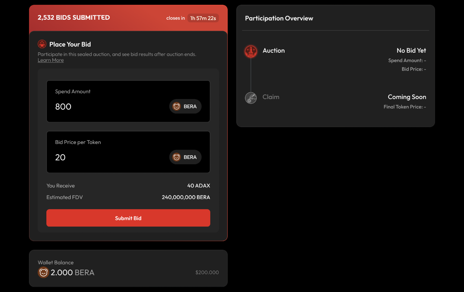 If your bid did not win, click the button to claim a full refund of the BERA token that you contributed.